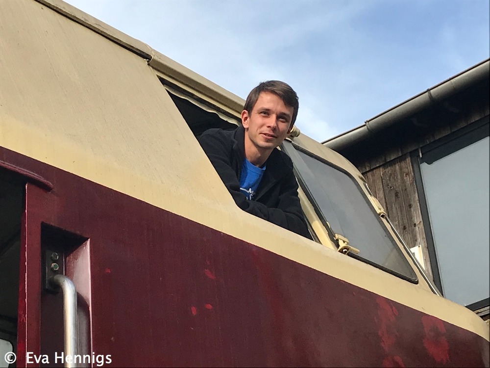 Der Hingucker an der Drehscheibe war wieder unsere Großdiesellok 118 119-7. Maximilian Ritter erklärte unermüdlich und fachkundig den Führerstand.
